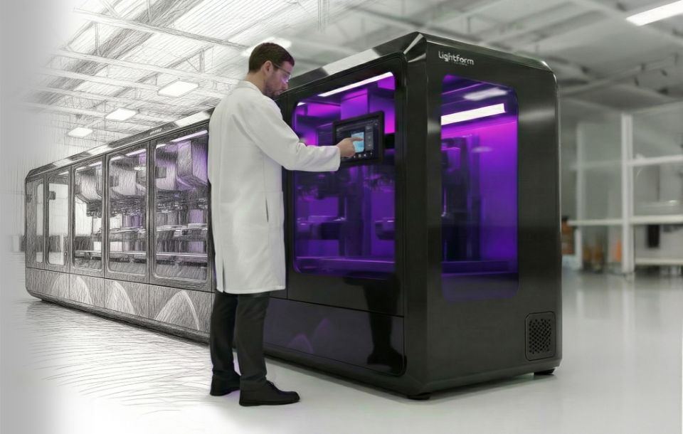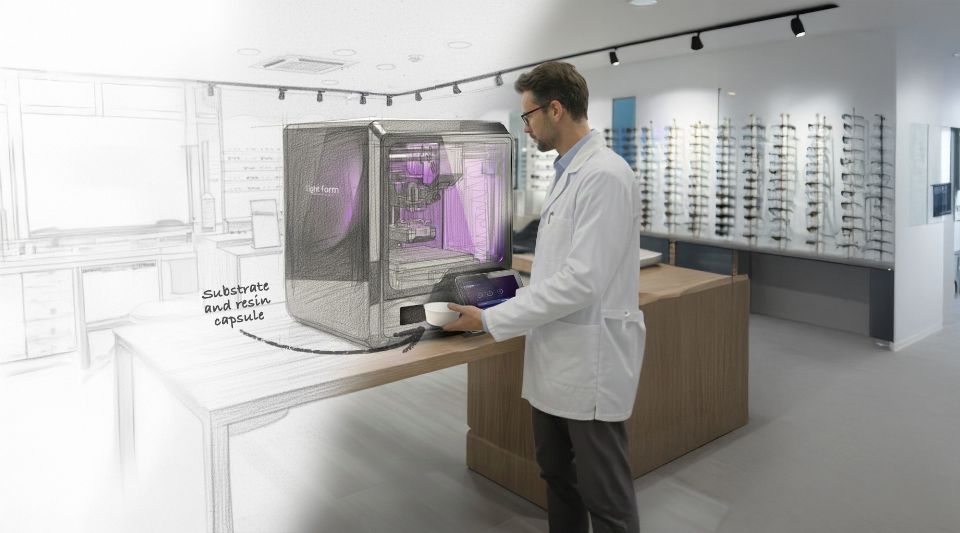 Light‑Form Technology™ is a digital additive manufacturing technology where lenses are created in a single step, just in seconds with a single flash of light.
